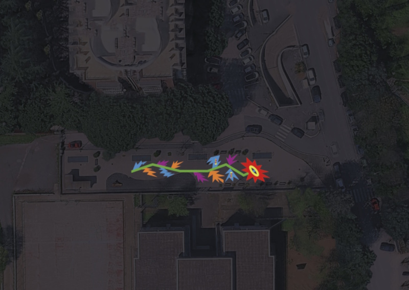 Jungle communications agency selected five artists (Marco Oggian, ScombinAnto, Serena Gianoli, GeometricBang, and Elisabetta Vedovato) to create street art on pavements using water-based paints produced from recycled raw materials. A non-toxic compound applied to the surface helps improve air quality by absorbing pollutants (including fine and ultrafine particulate matter such as PM10, PM2.5, and PM0.5). The color palette used is reminiscent of environmental maps showing air pollution levels.