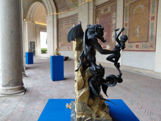 Ten sculptural works crafted from fine materials (such as bronze and silver with stone inlays) have been selected for the exhibition; these were created by the artist in collaboration with Bottega Mortet, a historic Roman workshop. With its frescoes, enveloping architecture and illusionistic construction of space, the semi-circular hall of the Renaissance villa does not merely serve as a backdrop but engages in a dialogue with the works, creating an unexpected continuity between decorative memory and contemporary imagination.