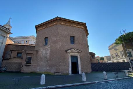 C'est l'une des églises de Rome invisible de la rue, entourée des plus hauts bâtiments du Rione Borgo et