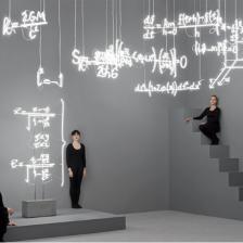 L’epicentro della mostra è Instruments for Inquiring into the Wind and the Shaking Earth (Strumenti per indagare il vento e i tremori della terra), una monumentale installazione composta da un’intricata serie di sculture realizzate con luci al neon di equazioni matematiche che hanno letteralmente rivoluzionato la nostra comprensione della realtà.