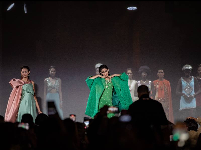 100 abiti, emozioni da indossare con rinnovata coscienza e rispetto per il pianeta, raccontano sei storie di moda dense di cultura, di arte, di alto artigianato, con la regia di Rossano Giuppa. Le creazioni dell’archivio storico privato di Stefano Dominella aprono lo spettacolo. Si tratta di abiti realizzati dai couturier che hanno scritto le pagine più importanti dell’alta moda italiana, da Antonelli a Irene Galitzine, da Fabiani a Valentino, da Lancetti a Sarli, creatori di moda che, partendo proprio da Roma, hanno lanciato il made in Italy nel mondo.