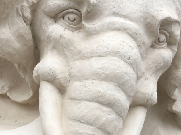 Opera di Vincenzo Romeo, i caratteristici gruppi scultorei che ornano il portale, come gli uomini in lotta con animali e le due teste di elefante a guardia delle porte di accesso ai due vestiboli, sono stati sottoposti a un lento e progressivo degrado causato dalle più diverse condizioni atmosferiche, dall’azione corrosiva del tempo e dall’accumulo di polveri e smog.